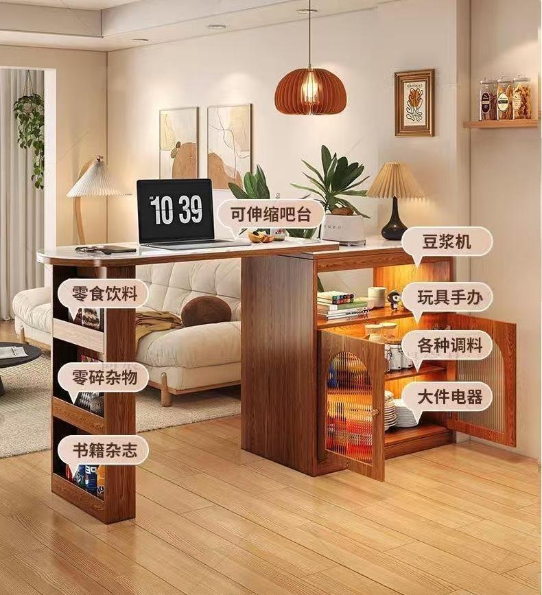 (樂家mall)伸縮吧台桌 岩板餐邊櫃 隔斷櫃 收納儲物櫃 自由旋轉櫃 bar table