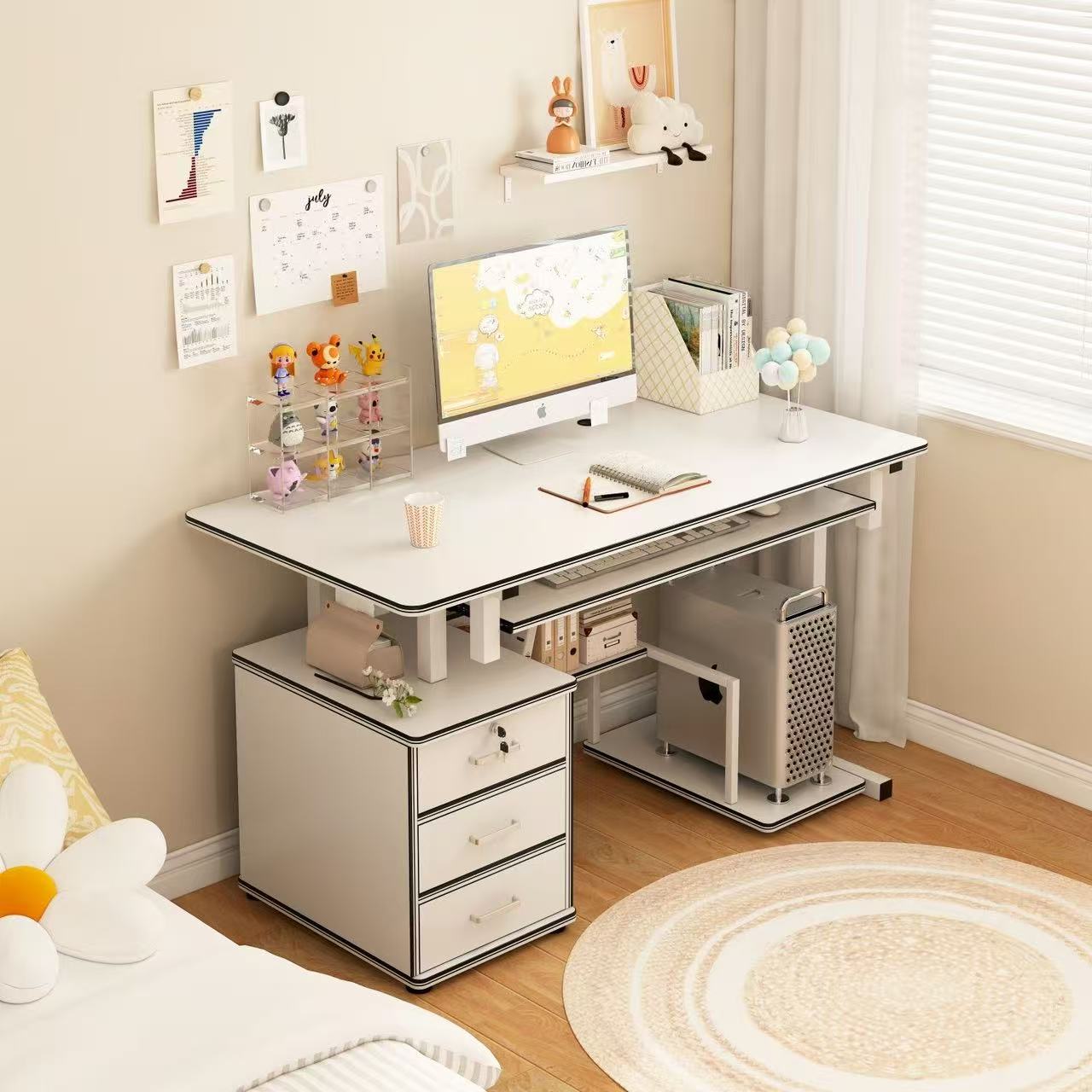 (樂家mall)鋼化玻璃電腦桌 學習桌 辦公桌 書桌 床邊桌 儲物桌 computer desk
