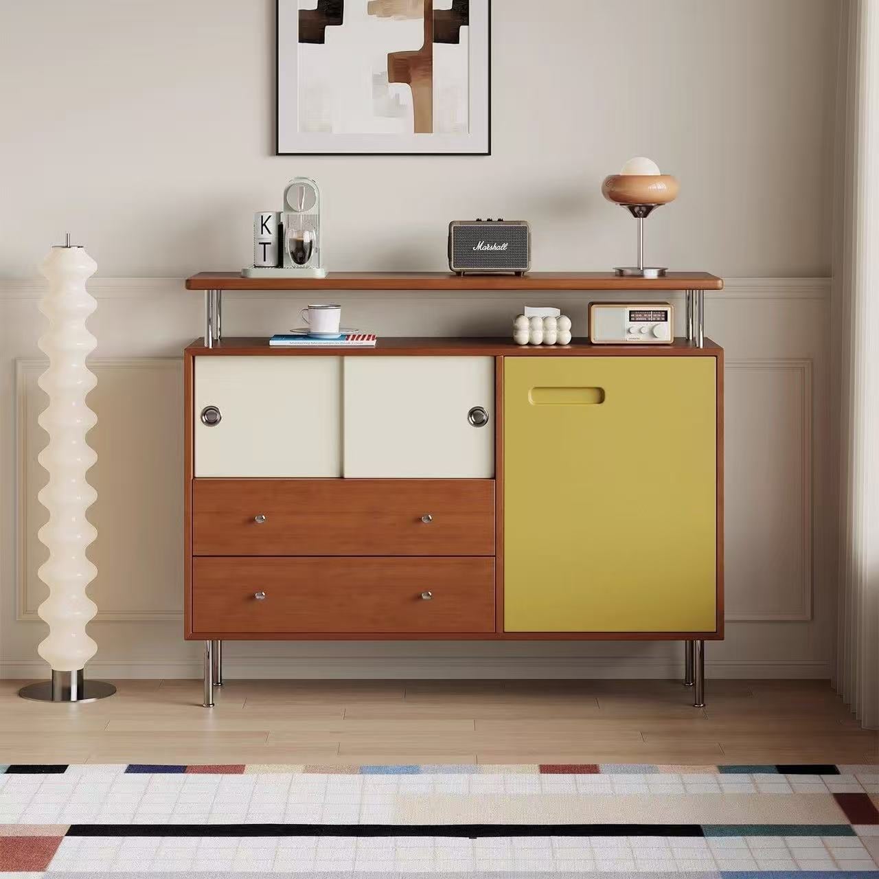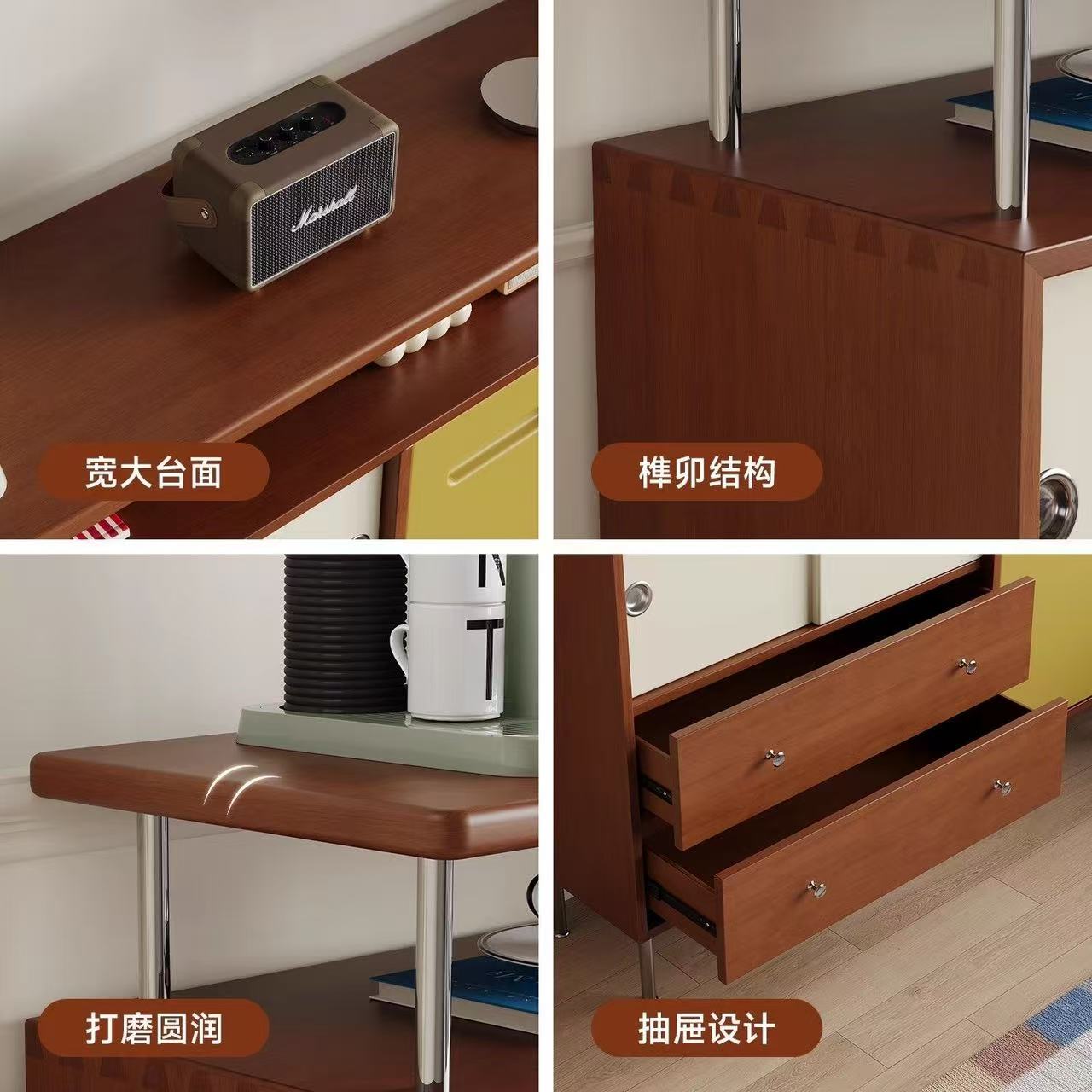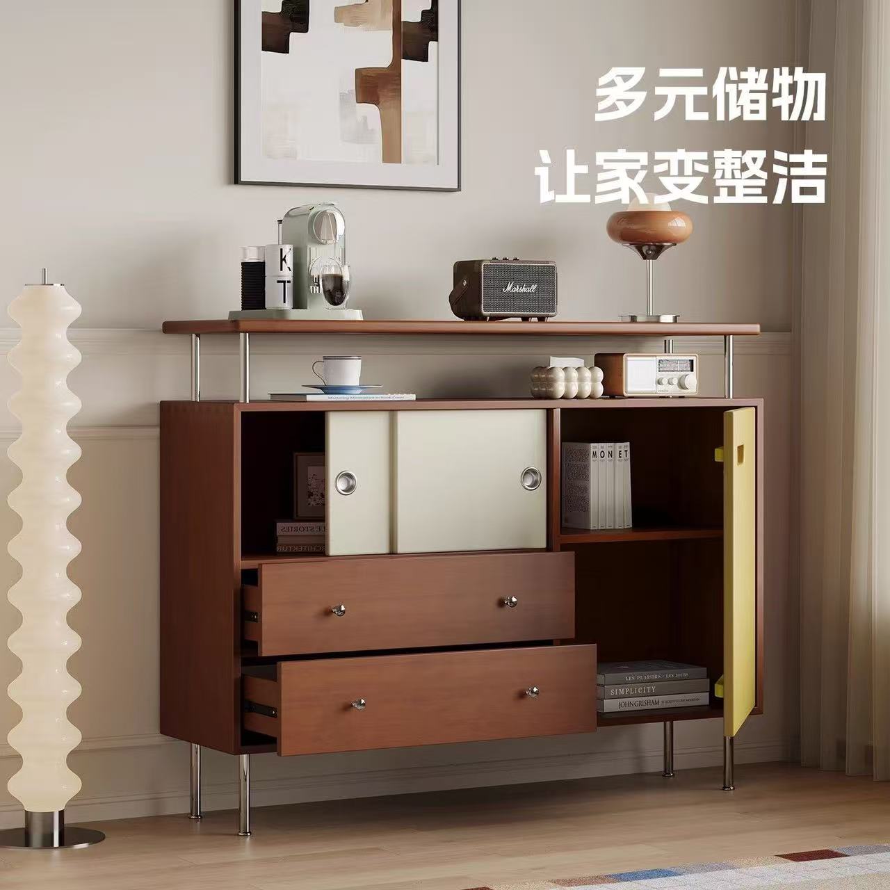 (樂家mall)靠墻儲物櫃 餐邊櫃 拼色收納櫃 實木邊櫃 床尾櫃 玄關櫃 Sideboard