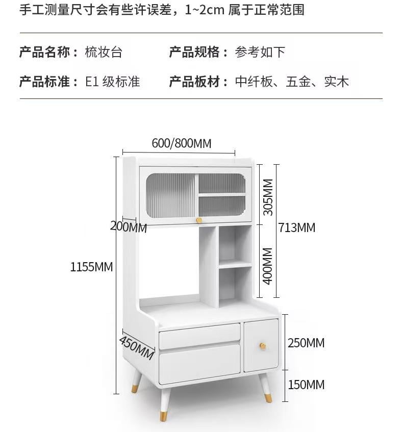 ---------------------------------------- 貨號 : JC-25101812 售價: HK$2288 #梳妝櫃 ---------------------------------------- 可選規格 可選顏色:白色 Size: (W/闊)×(D/深)×(H/高)cm: 飄窗梳妝枱: 60*45*115.5cm;HK$2288 80*45*115.5cm;HK$2688 飄窗梳妝枱+妝鏡: 60*45*115.5cm;HK$2680 80*45*115.5cm;HK$3080 ----------------------------------------