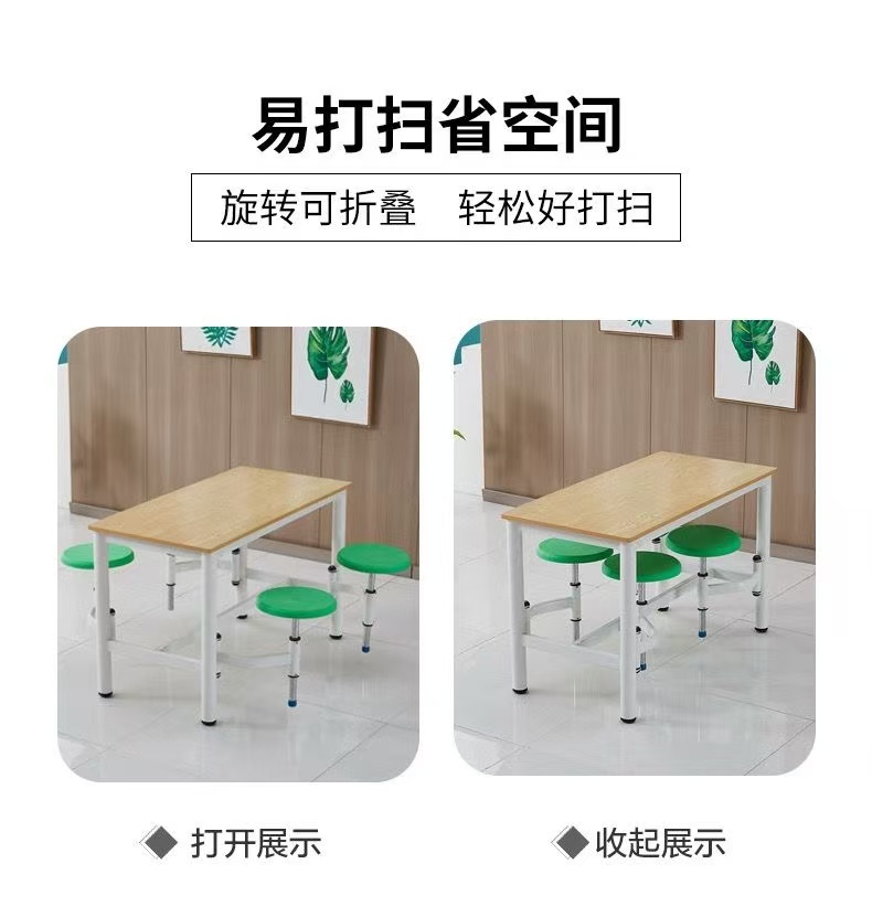 (樂家mall)飯堂餐桌 員工食飯桌 一體組合餐桌椅 多人位餐枱 可旋轉伸縮凳子 香港 訂造傢俬 dining table