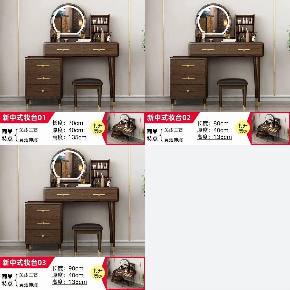 (樂家mall)梳妝枱 伸縮梳妝桌 收納櫃 梳妝凳 梳妝品儲物櫃 dressing table