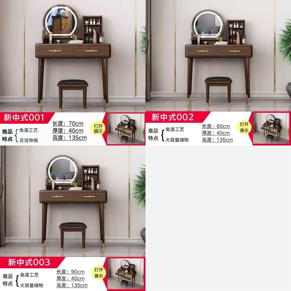 ---------------------------------------- 貨號 : JC-100313 售價: HK$2288 #梳妝枱 ---------------------------------------- 可選規格 可選顏色:胡桃色 Size: (W/闊)×(D/深)×(H/高)cm: 梳妝桌+妝鏡+妝凳: 70*40*135cm;HK$2288 80*40*135cm;HK$2388 90*40*135cm;HK$2488 梳妝桌+妝鏡+妝凳+邊櫃: 70*40*135cm;HK$3188 80*40*135cm;HK$3288 90*40*135cm;HK$3388 ----------------------------------------